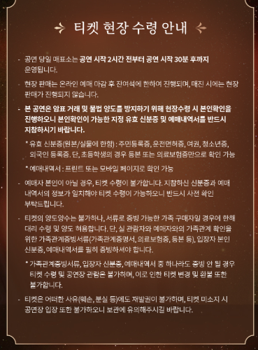 - 티켓팅 당일: 공연 시작 10초 전 새로고침 후에는 절대 새로고침 금지입니다 ⌨️