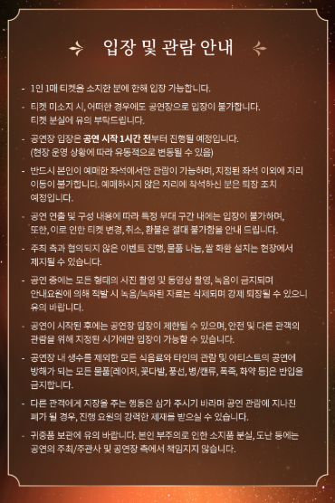 여러분이 즐거운 공연을 관람할 수 있도록 꼼꼼히 정리한 내용입니다. 😊