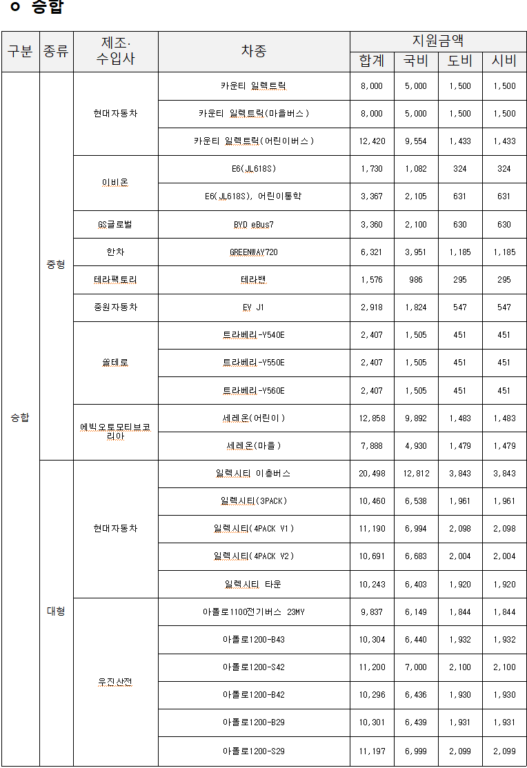 - 전기화물차: 최대 2,288만 원