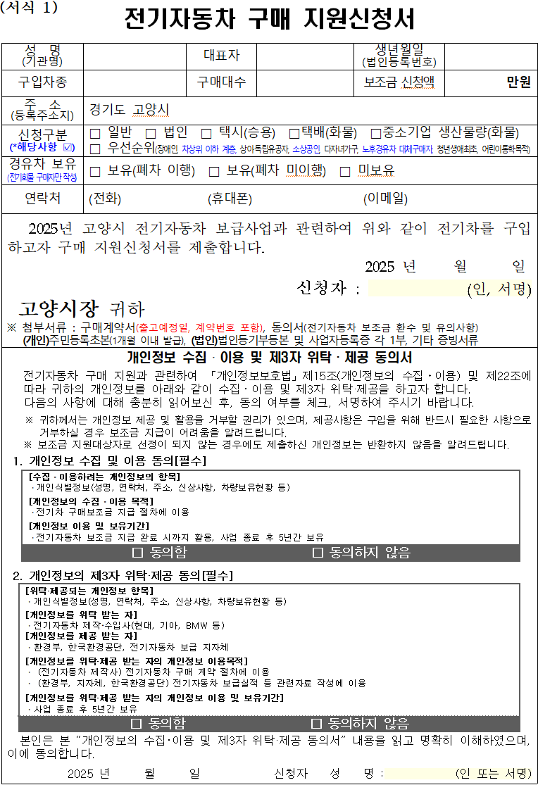 *첨부파일:2025년 고양시 전기자동차 보급사업 공고문