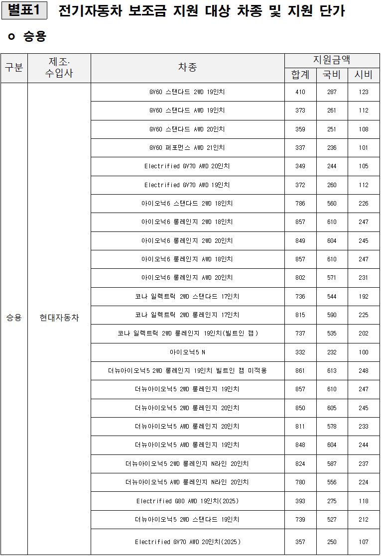 2025년부터는 전기승용차, 전기화물차 등 다양한 차종에 대해 차등 지원이 적용되어,