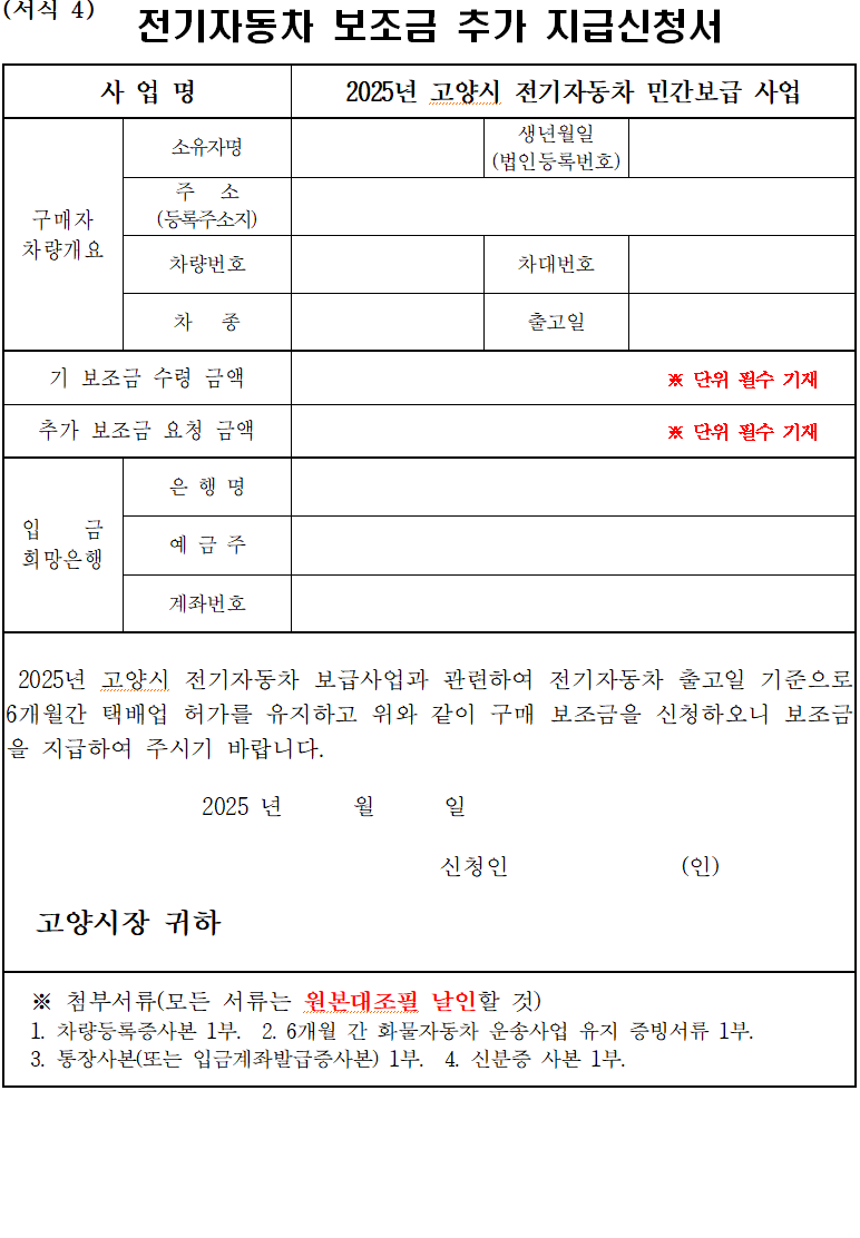 이외에도, 고양시 전기차 보조금 신청 후 의무 운행 기간이 정해져 있을 수 있으니,