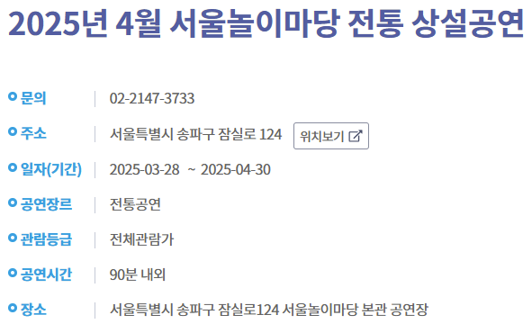 서울놀이마당 2025년 4월 전통 상설공연 🌸