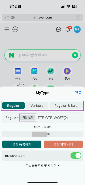5) '원하는 글꼴 적용 방식'을 선택 -> '파일' 선택 -> '글꼴 파일' 선택 -> 완료