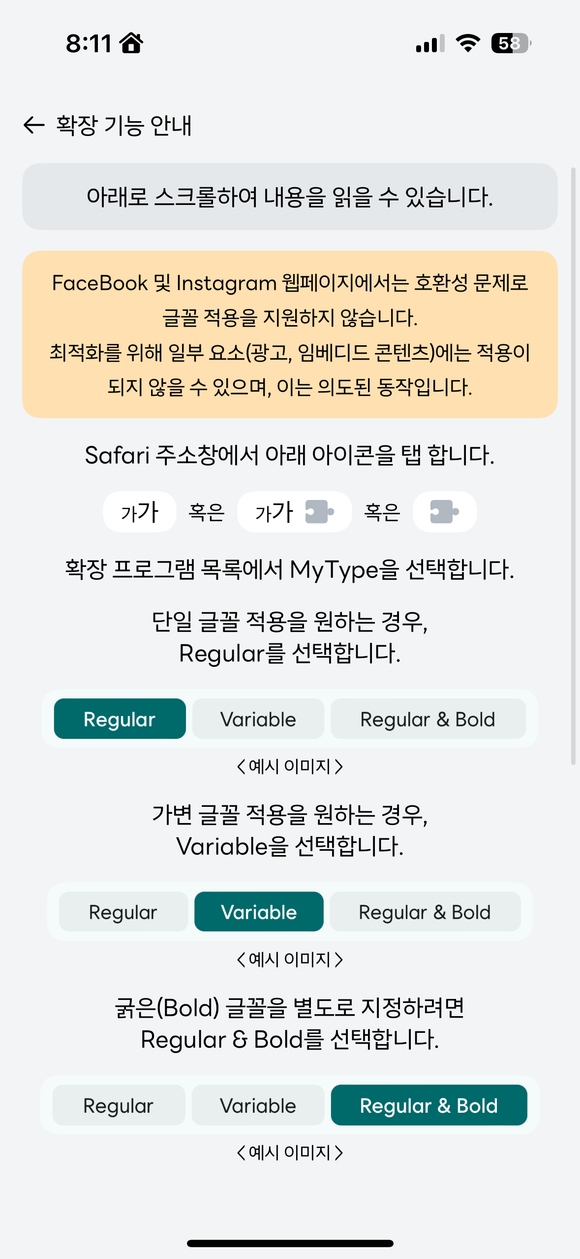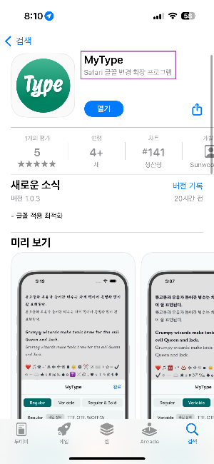 어플을 설치하셨으면 알려드리는 간단한 설정을 진행하시고 Safari에서 변경된 글꼴을 즐겨보세요!