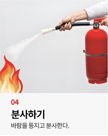 - 소화기는 불길이 난 초기에 사용해야 효과적