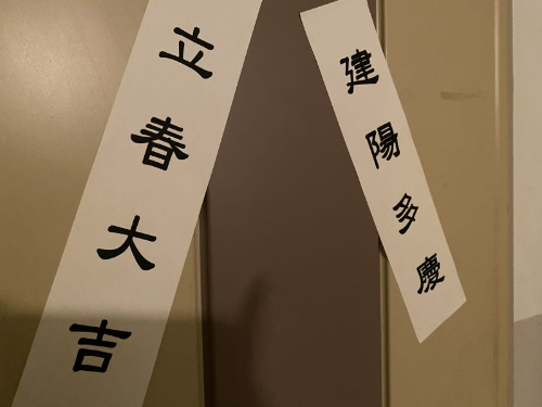 이를 입춘첩(立春帖)이라고 하며, 이는 집안의 화목과 건강, 풍요를 기원하는 의미를 담고 있습니다.