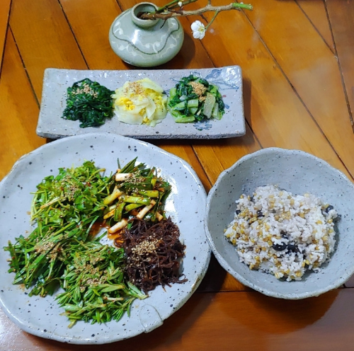특히 취나물, 시금치, 고사리 등의 나물을 함께 먹으며 건강을 기원했습니다.